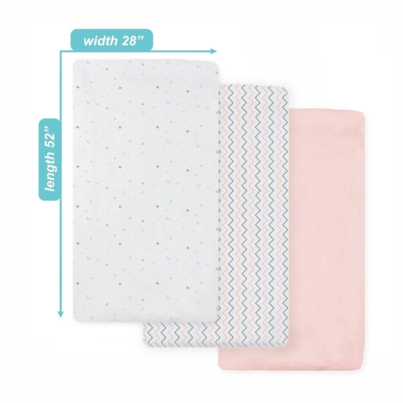 American Baby Company 3 Pack Fitted Crib Sheets 28" x 52", Soft Breathable Neutral 100% Cotton Jersey Sheet, Blush Pink Star/Zigzag, for Boys and Girls, Fits Crib and Toddler Bed mattresses