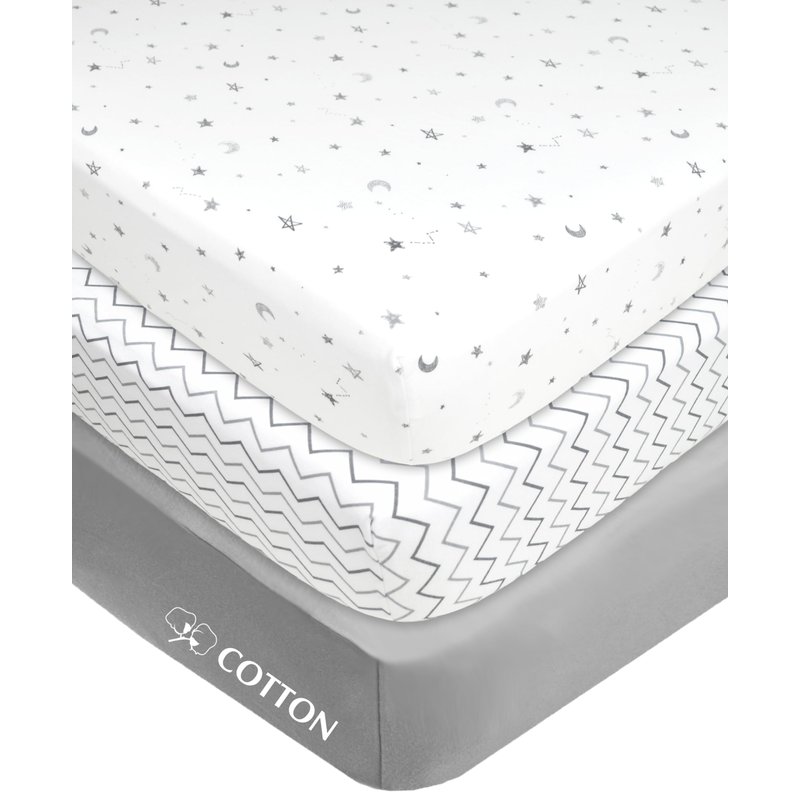 American Baby Company 3 Pack Fitted Mini Crib Sheet 24" x 38", Soft Breathable Neutral 100% Cotton Jersey Portable Sheet, Gray Star/Zigzag, for Boys and Girls, Fits Most Pack N Play Mattresses