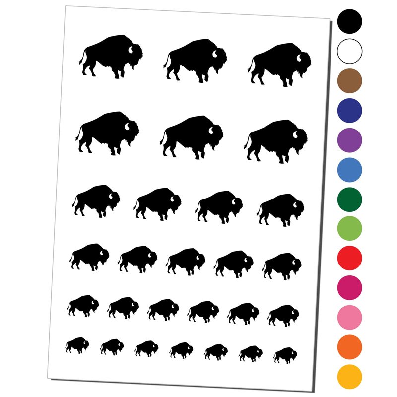 American Bison Buffalo Silhouette Temporary Tattoo Water Resistant Fake Body Art Set Collection - Black (One Sheet)