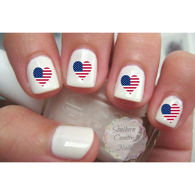 American Flag Heart Nail Art Decals United States USA 20pcs