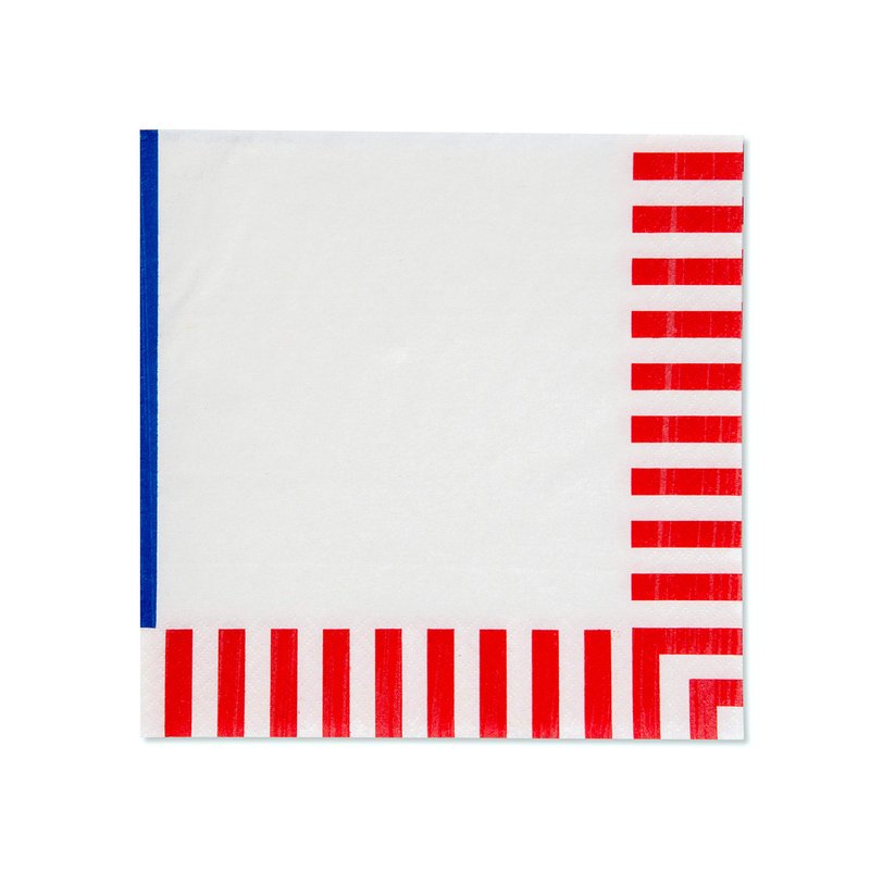 - Patriotic lunch napkins feature red and white striped edge detailing