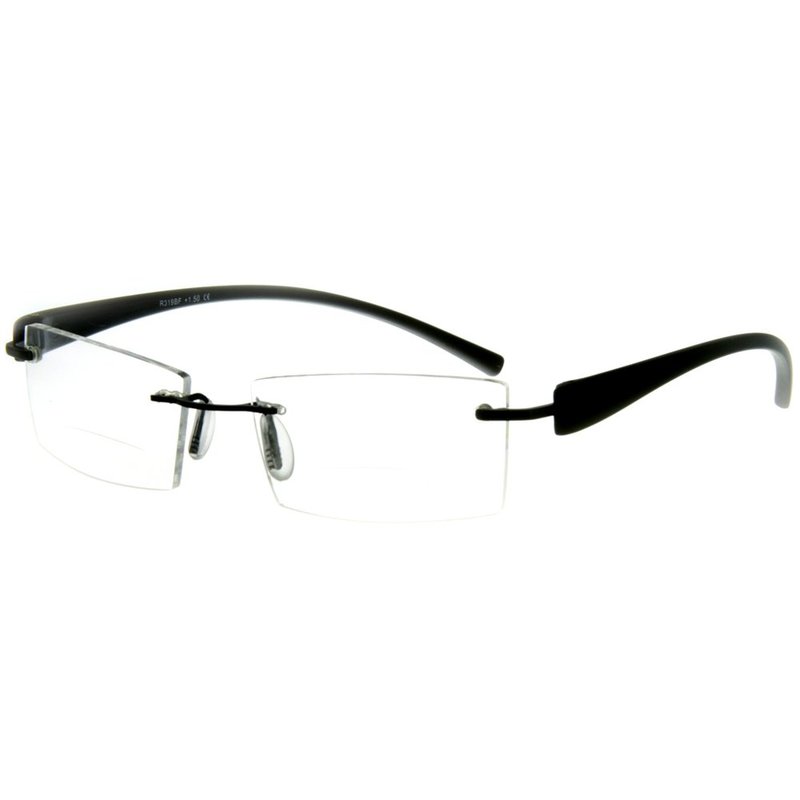 "American Woman DX" Slim, Semi-Rimless Bifocal Reading Glasses for Stylish Women (Black +2.50)