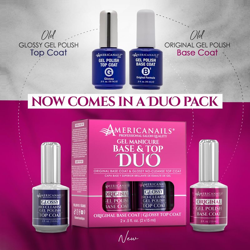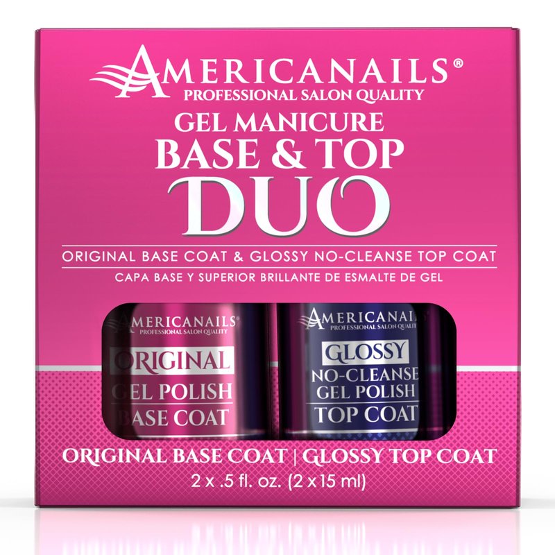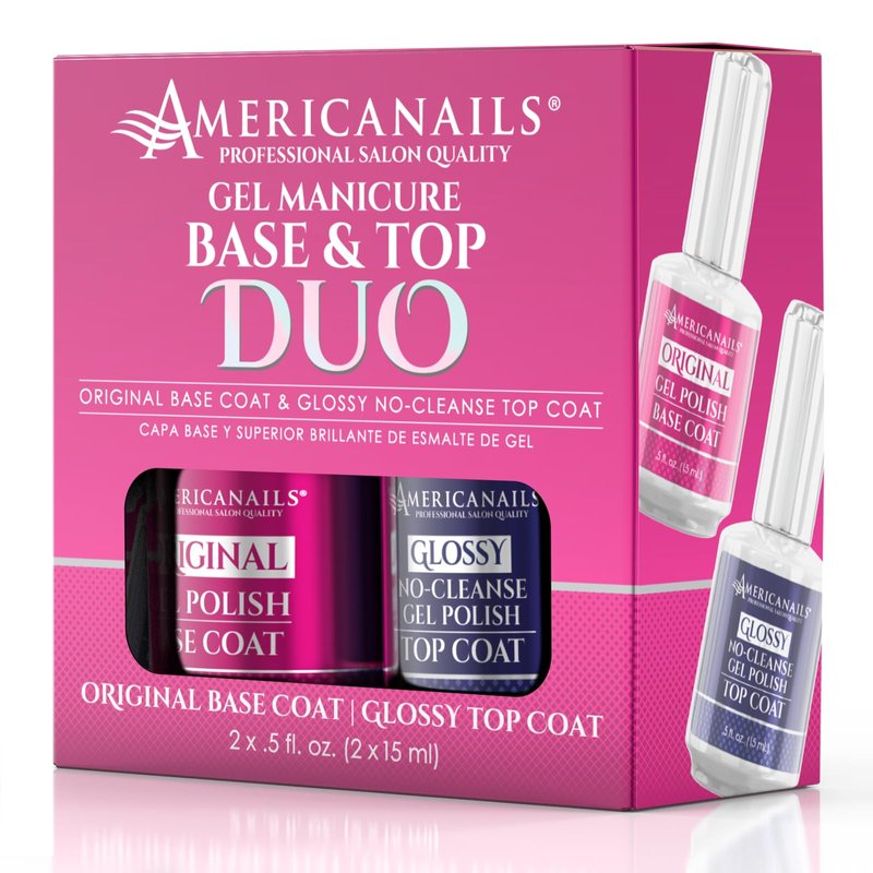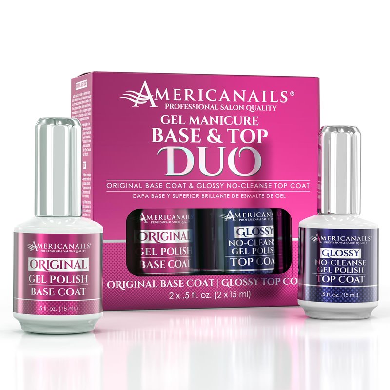 Americanails Gel Polish Base Coat & Top Coat Duo - Professional Salon Quality, Original Dual Cure Formula for Maximum Adhesion & Long Lasting Glossy Finish, Soak Off UV LED Fast Drying Gel (.5 oz)