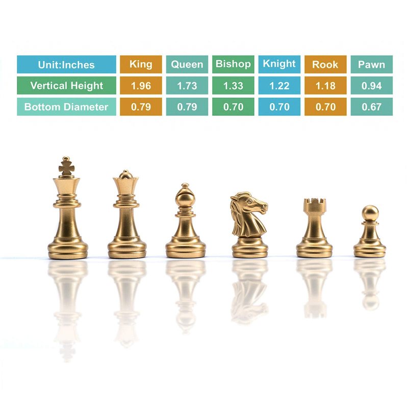 - EXCELLENT DESIGN AND CUSTOMER FIRST - Gift box packaging, packed with detailed chess rules instructions, and the pieces you need, King: 1.96 X 0.79 inches; Queen: 1.73 X 0.79 inches (include 2 extra queens). If you have any questions, we provide 24-hour online technical support