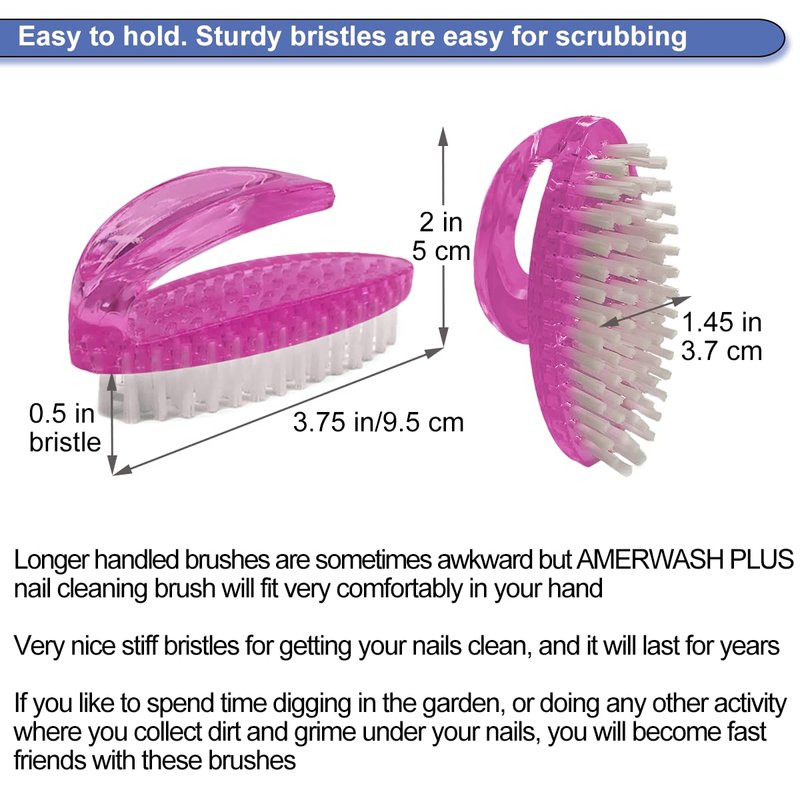 The AMERWASH PLUS multi-purpose hand grip nail brushes are great to use for many things that you need a brush to scrub. The bristles are stiff enough to actually get the grime off your hands, but are not painful. These are really nice little brushes in the shower for daily use, it has very nice type with an open handle so it can hang over the side of shower caddy. Also, it's very practical to use around your house, you can have one in every room with a sink, outside at the gardening station and workshop. It's durable and long-lasting, easy to grip and no bristles falling out for sure! Especially, these amazing brushes can get into small corners where a bigger brush can’t go. If you are looking for a nice stiff brush for cleaning your hands and nails after work, just add it to the cart, this is the right tool for your daily cleaning. Buy with confidence!