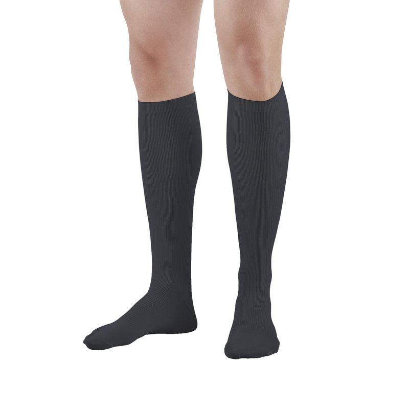 Our men's moderate support dress sock is the industry leader and a classic choice in men's compression socks. 15-20 mmHg Graduated compression, reinforced heel and toe with non-constricting, comfort top band for real stay-up power. Reciprocated heel pocket and large toe box for comfortable fit. Great durability, great value! Fiber Content: 85% Nylon, 15% Spandex