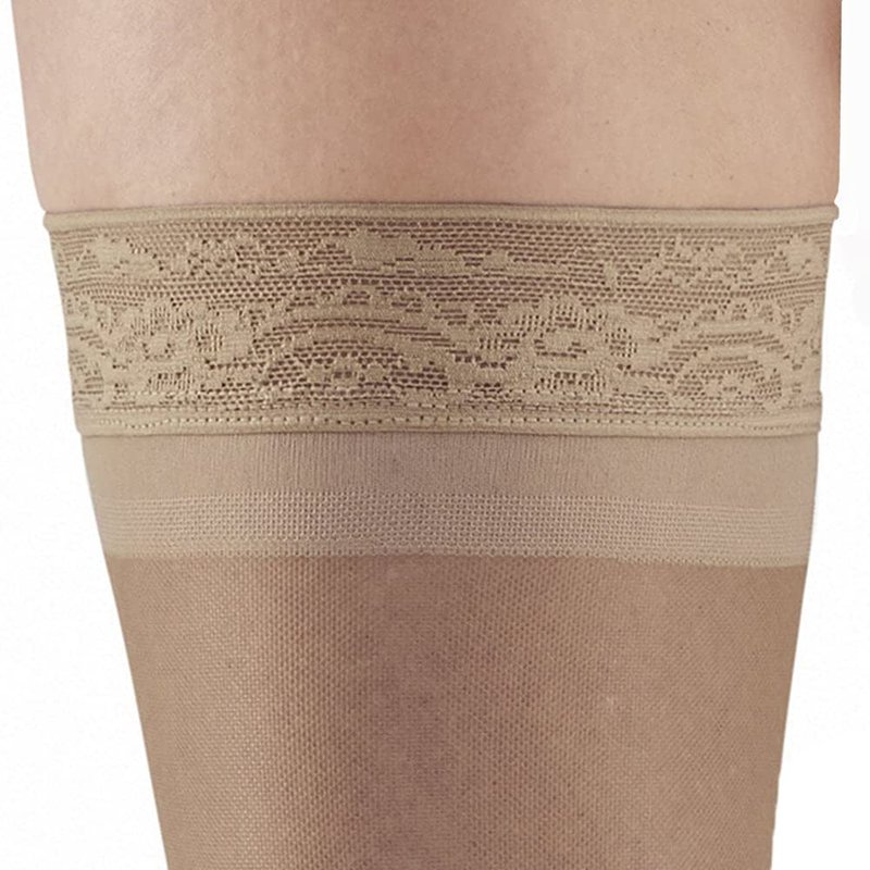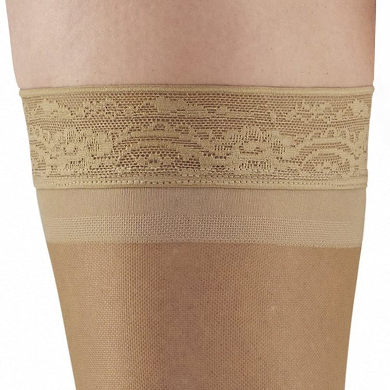 Ames Walker AW Style 48 Sheer Support 20-30 mmHg Firm Compression Open Toe Thigh High Stockings w/Top Band Beige Medium