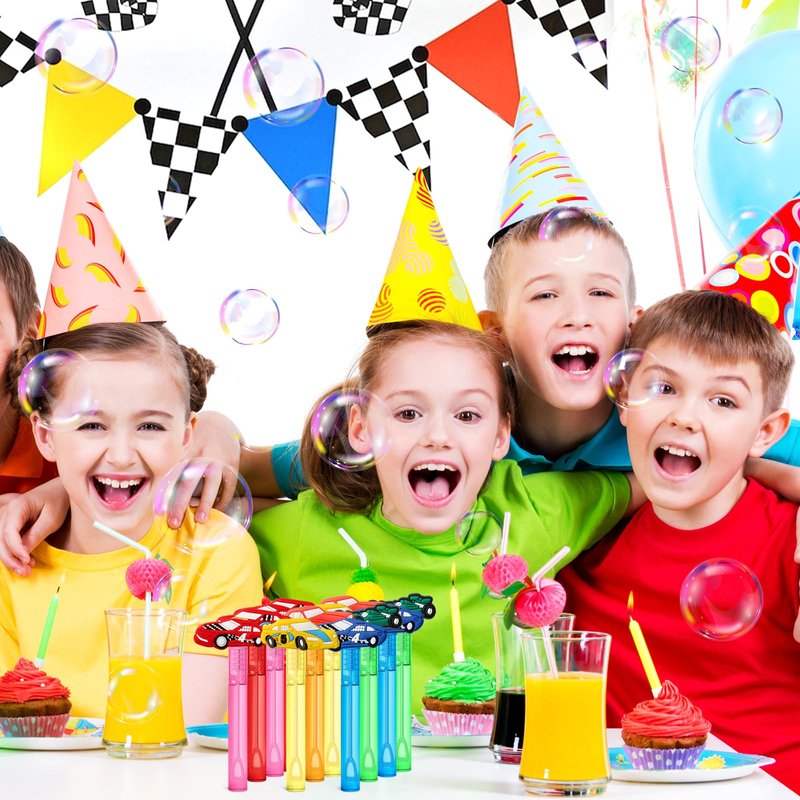 - Race Car Bubble Wands: Our Bubble Wands set includes 24 mini bubbles in 6 vibrant colors- Yellow, Orange, Blue, Red, Green, Pink, to spark joy and wonder at any event, creating magical moments with our Race Car Bubble Wands!