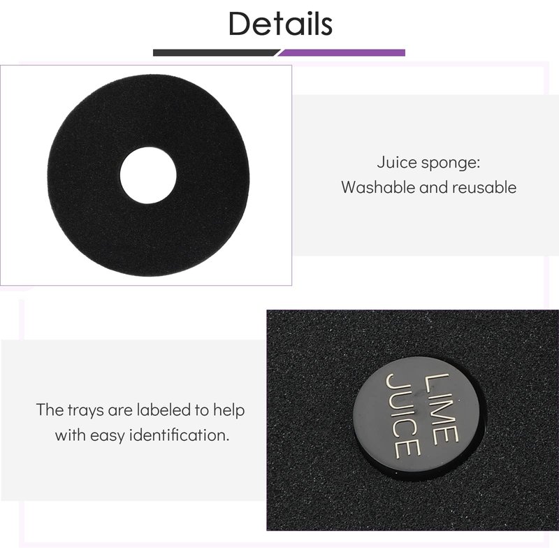 - Lime Juice with Sponge: Just covers the rim with the sponge, gently press down on the cocktail glass to produce a perfect layer of juice to hold the salted or sugared rim. The juice sponge is washable and reusable.