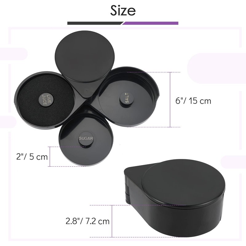 - Prefect for Cocktail Lovers: The 3-tier compartments allows for three separate slots to hold salt, sugar, and other spices at the same time. Black color is classic for any decor and uses in a bar / home bar. This 3-tier black bar glass rimmer with sponge is ideal for Margaritas, Bloody Marys and Gimlets etc.