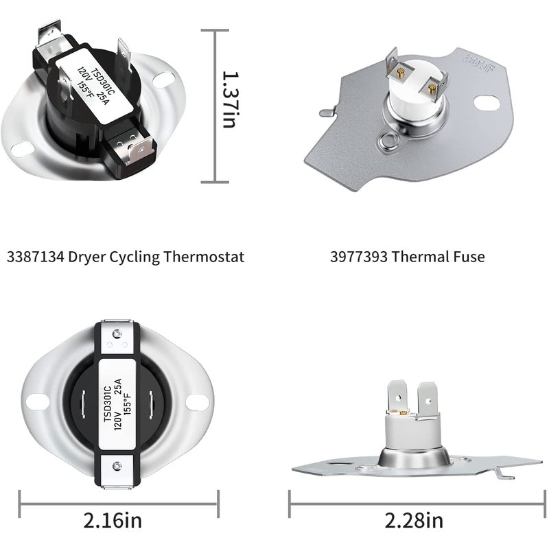 WHAT'S THIS:AMI PARTS 279838 & 3977767 & 3392519(2PCS) & 3387134 & 3977393 Dryer Heating Element with Thermal Fuse and Thermostat