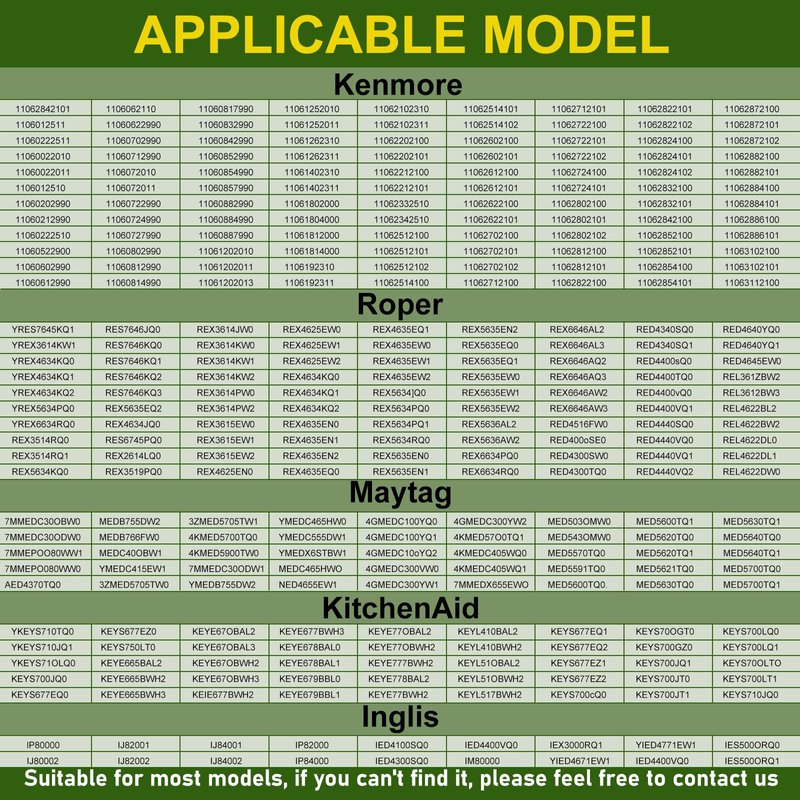- 【FIT MODELS】279838 Heating elements Fits for Kenmore 70 80 90 300 400 500 600 series model: Fits for Kenmore 70 80 90 300 400 500 600 Series Model(Show some models, all models refer to Figure 4 or 5): WED4815EW1 NED4655EW1 MEDC215EW1 LER4634EQ2 RED4640YQ1 AED4675YQ1 WED4800BQ1 AED4475TQ1 MEDX655DW1 WED49STBW1 KEYE665BWH2 KEYE665BWH3 KEYE670BAL2 KEYE670BAL3 KEYE670BWH2 KEYE670BWH3 KEYE679BBL0 KEYE679BBL1 KEYE770BAL2 11096560200 1037777000 1037777020 1037777040 1037777060 1038017050 1038517050 11060222510 11060522900 11060602990 LER5620KQ0 7EWED1510YM0 7EWED1705YM0 7EWED1705YM1 7EWED1730YW0 etc
