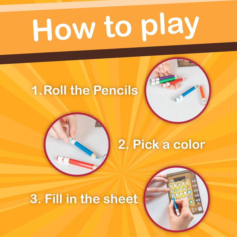 - INNOVATIVE ROLL & WRITE DICE GAME: Roll the pencils like rolling dice to determine which shape you color in on your play sheet, offering a unique & strategic gameplay experience.
