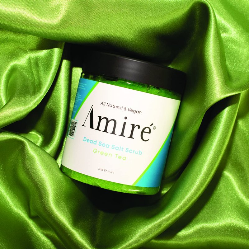 Amire's All Natural Dead Sea Salt Green Tea Body Scrub.