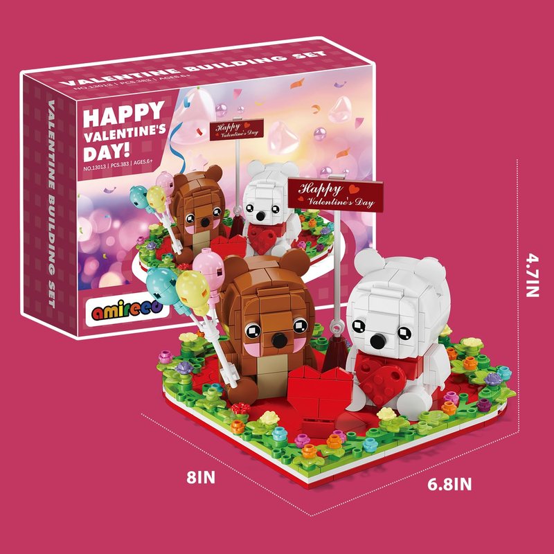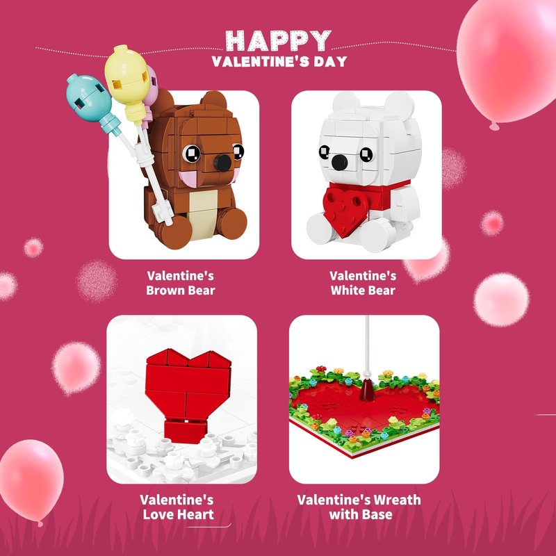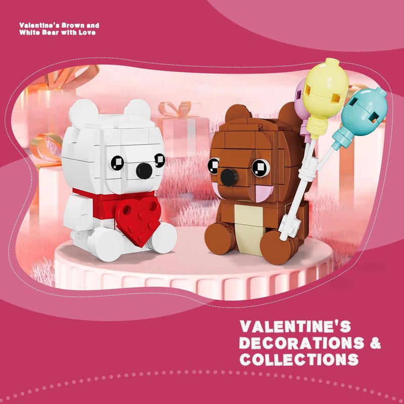 - 🧸Valentine Bears Blocks Toy - This collectible cute building set contains a cute brown bear, a white bear, a heart-shaped base plate with a wreath and a street sign celebrating Valentine's Day. Suitable for both children and adults, it provides an enjoyable experience for block lovers of all ages.