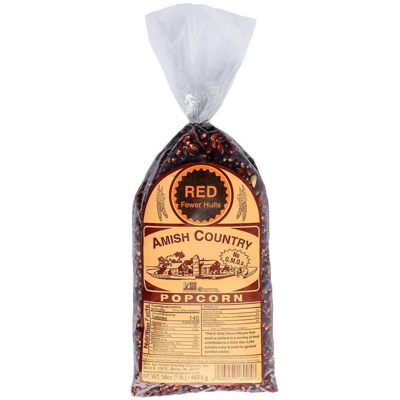 - 1 LB RED POPCORN KERNELS - This delicious, gourmet popcorn is made in the heart of Amish country.
