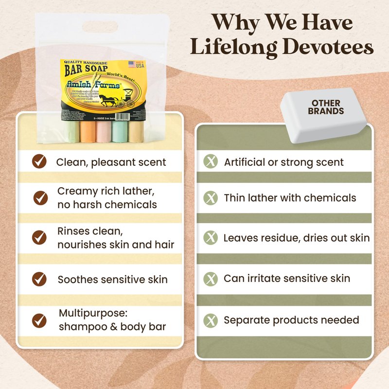 - PLS. READ OUR RECENT REVIEWS - Our soaps have been imitated and sold here years ago, but the real Amish Farms are now here and finally gained control. Please read the the changes we made with our Quality Control and you will see why our customers and their families became lifelong devotees! With Customer Satisfaction Guarantee and friendly customer service. Send us a message and our team members will quickly resolve any issue.