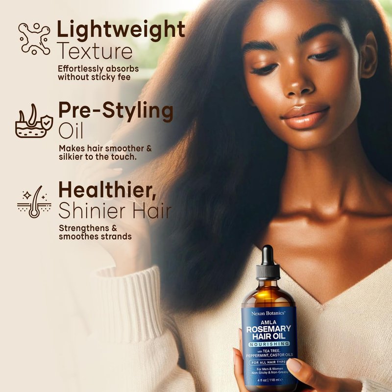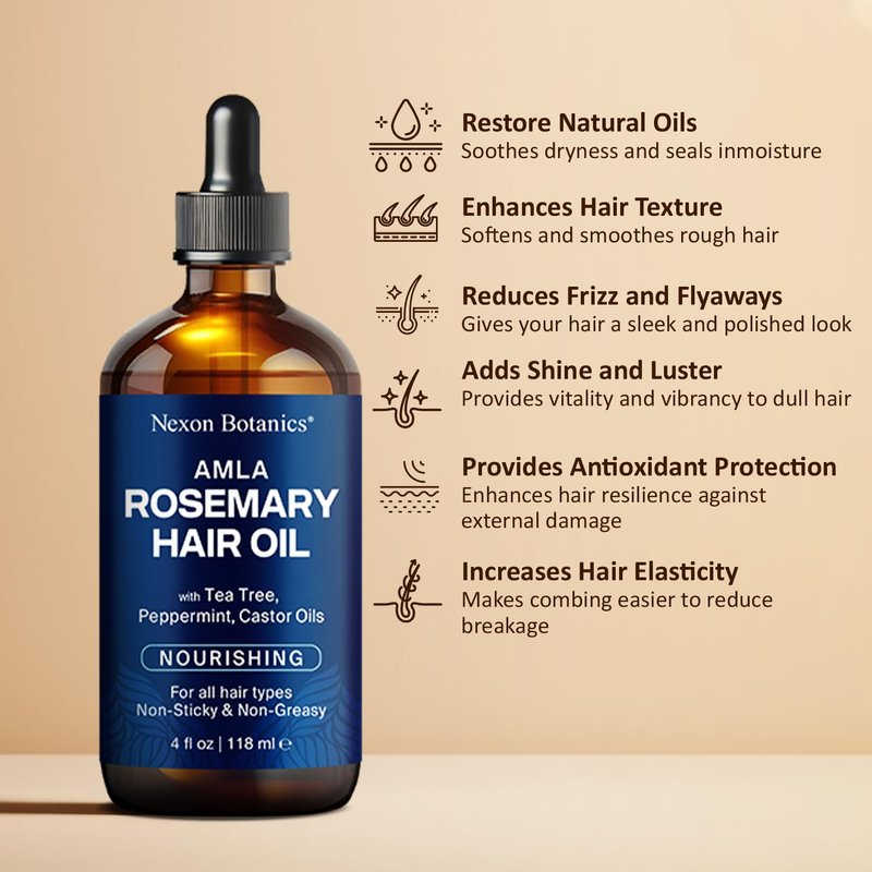Amla Rosemary Hair Oil 4 fl Oz - Nourishing Rosemary Oil for Hair Growth - Mint, Castor, Tea Tree - Hair Growth Oil for Damaged Hair, Curly Hair, Frizzy Hair, Dry Scalp - Men, Women - Nexon Botanics