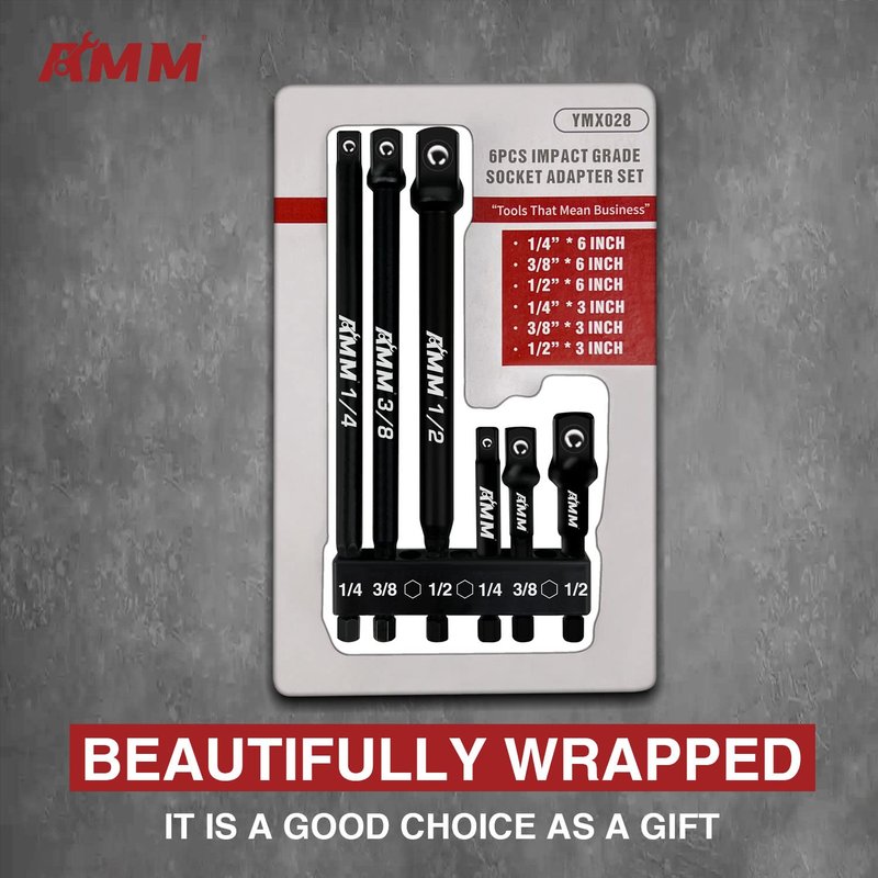 AMM 6-Piece Impact Grade Socket Adapter Set, 3-Inch & 6-Inch Power Drill Socket Driver Adaptor, 1/4", 3/8", 1/2" Hex Shank Adapt Your Power Drill To High Torque Impact Wrench