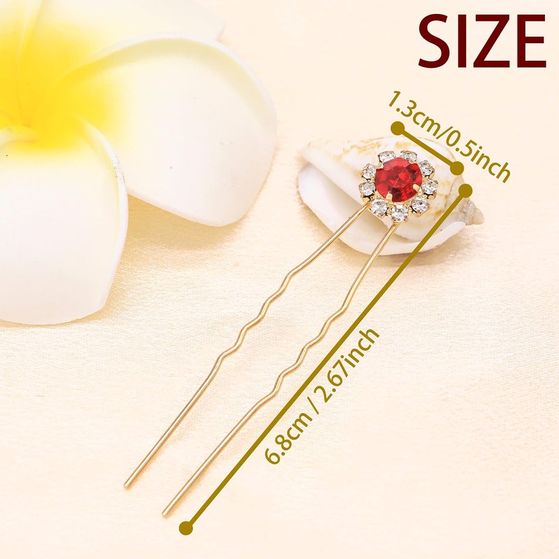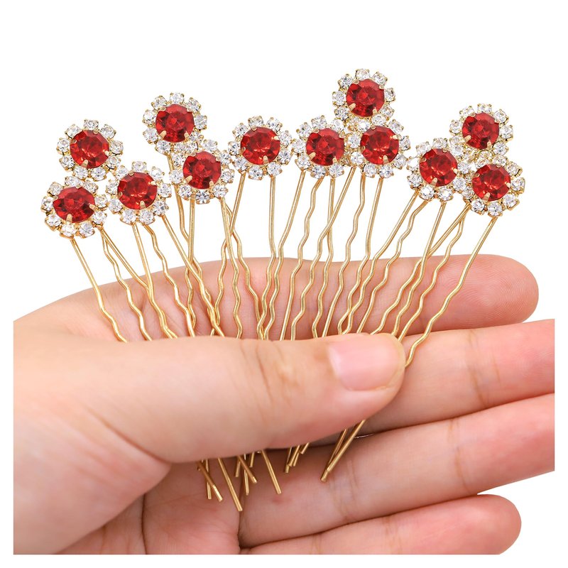 Ammei Crystal Bridal Hair Pins Clips Wedding Hair Accessories Hair Set Jewelry With Rhinestone For Brides and Bridesmaids Set Of 12 (Red)
