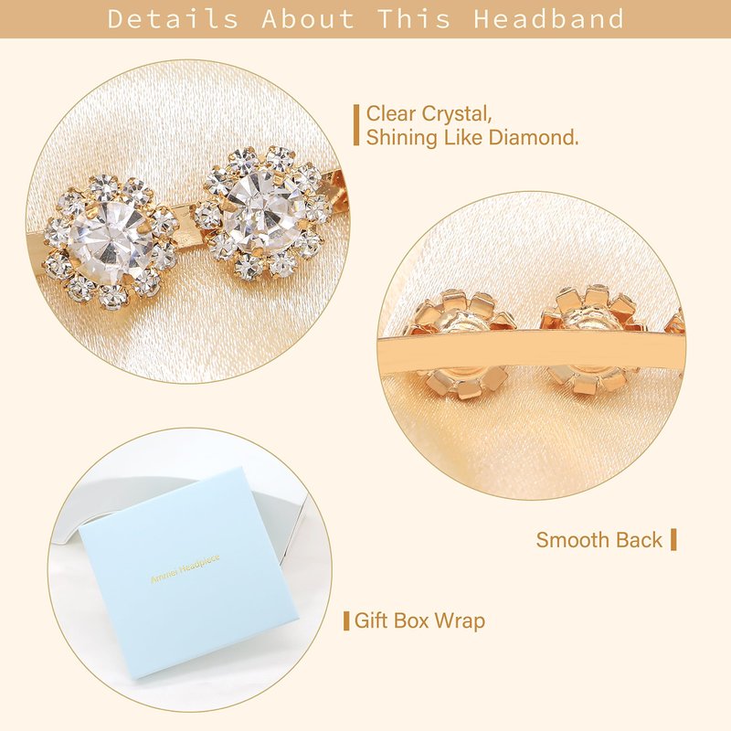 Ammei Headpiece Bridal Headpiece Wedding Headband with Crystal and Hair Accessories (Gold)