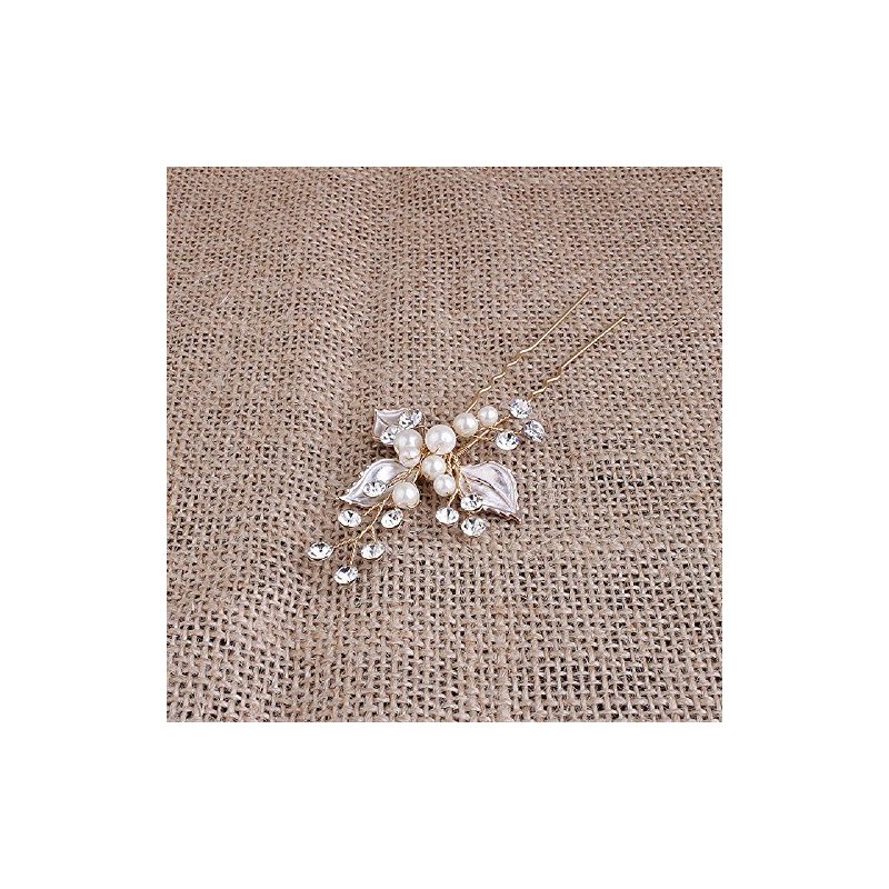 Ammei Headpiece Gold Wedding Headpieces For Bride Handmade Leaves Design Bridal Hair Pins with Rhinestones and Pearls Set Of 2 (Gold)