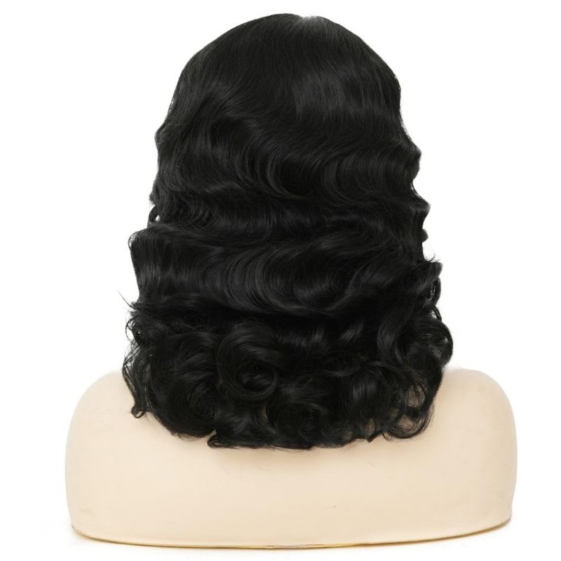 Amnenl Black Finger Wave Wigs for Women Long Curly 1920s Wig Vintage Wigs Lady Synthetic Cosplay Costume Wig