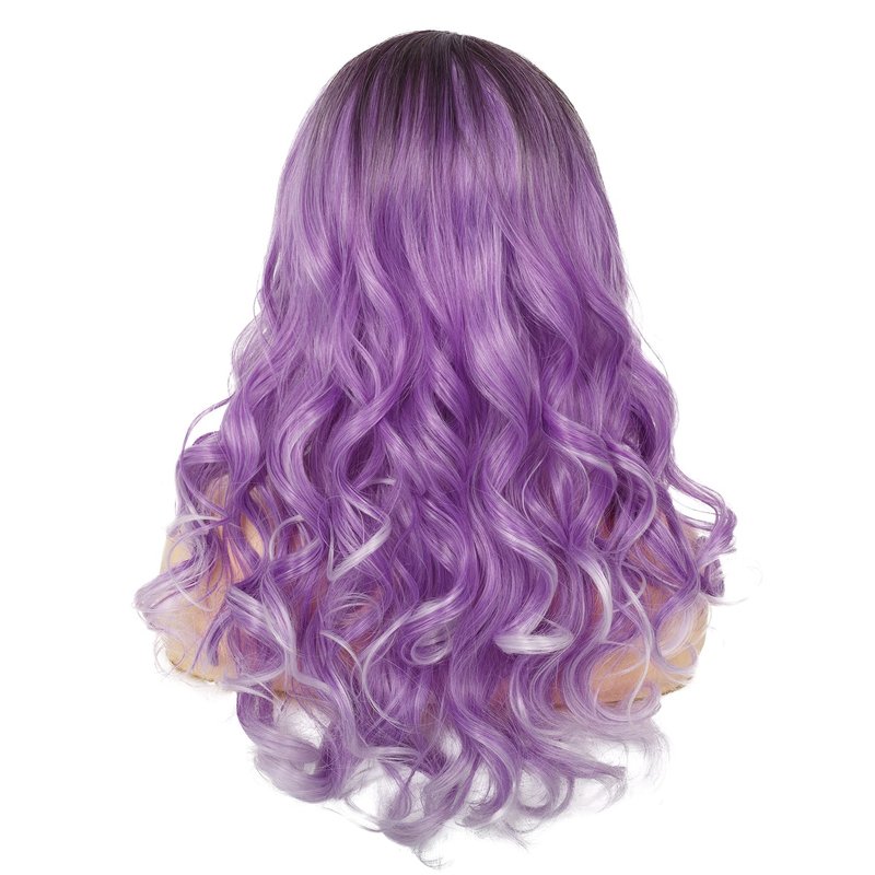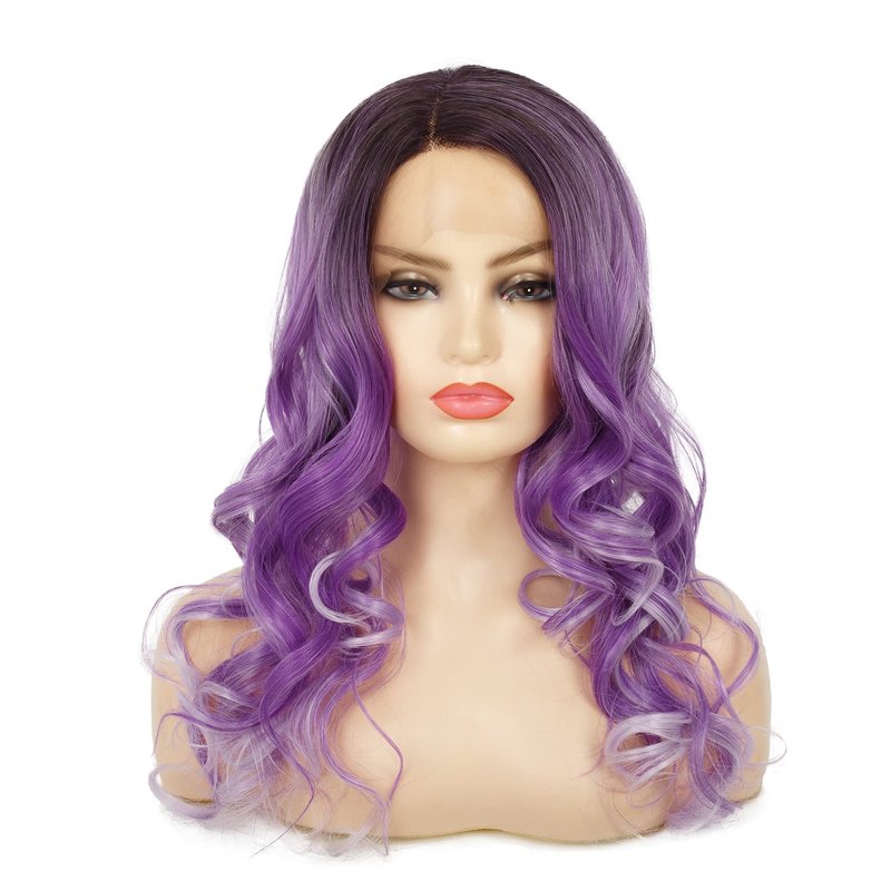 Amnenl Purple Lace Front Wigs Long Ombre Curly Wavy Hair with Dark Roots Hair Wavy Wig Side Part Cosplay Halloween Wigs