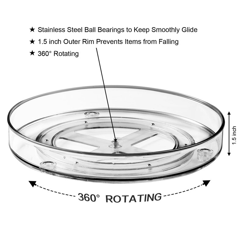 - Game Changer: 360 rotating turntable organizer with easy-glide stainless steel ball bearings turns smoothly, enabling convenient access to items stored at the back or sides of the cabinet, pantry, fridge, find what we need just a single spinning.
