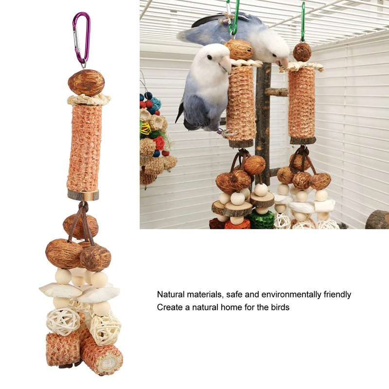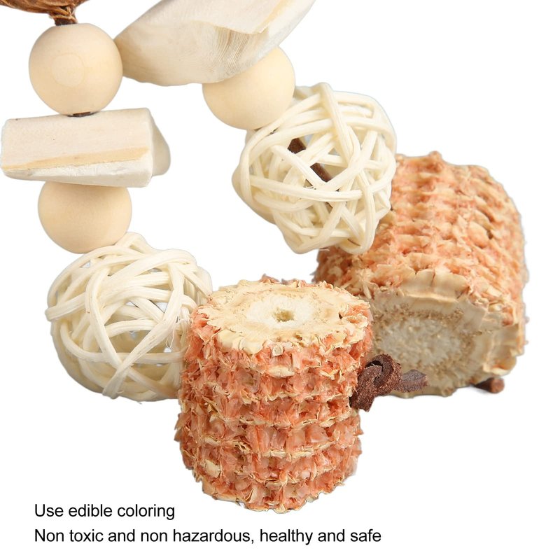 1. MATERIALS: bite toy is made of corn cob, cuttlefish bone, rattan , wood, beech wood, nuts and other materials, which is nutritious and healthy.