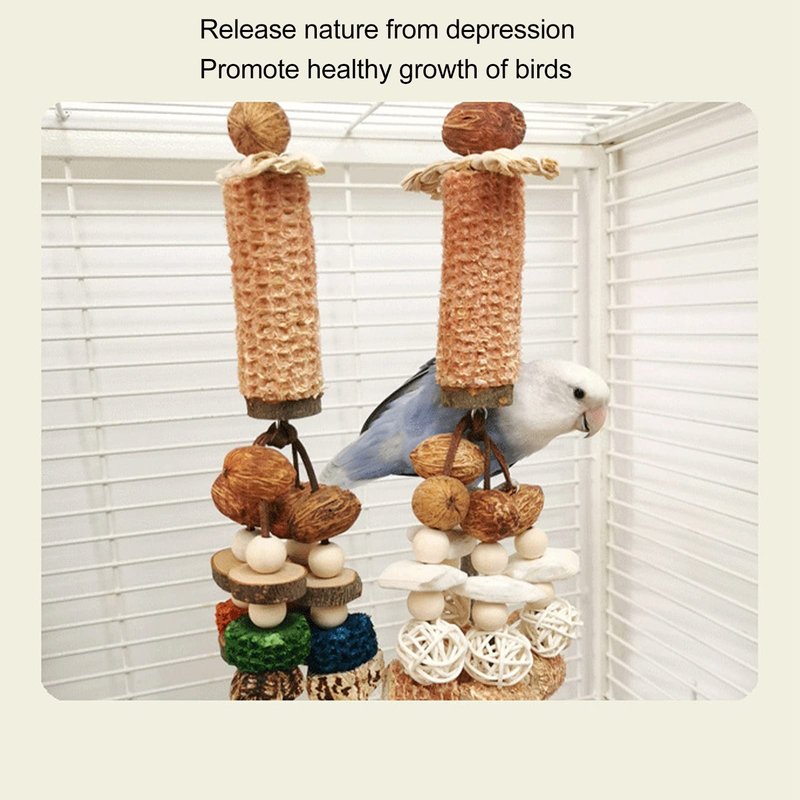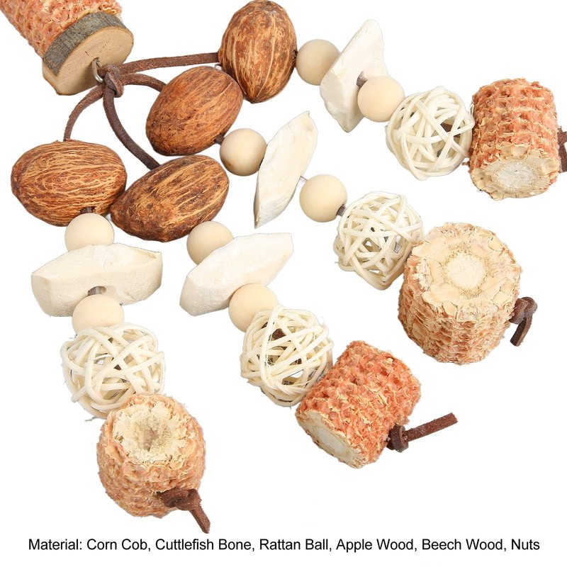 - 【Natural Materials】The bite toy is made of corn cob, cuttlefish bone, rattan , wood, beech wood, nuts and other materials, which is nutritious and healthy.