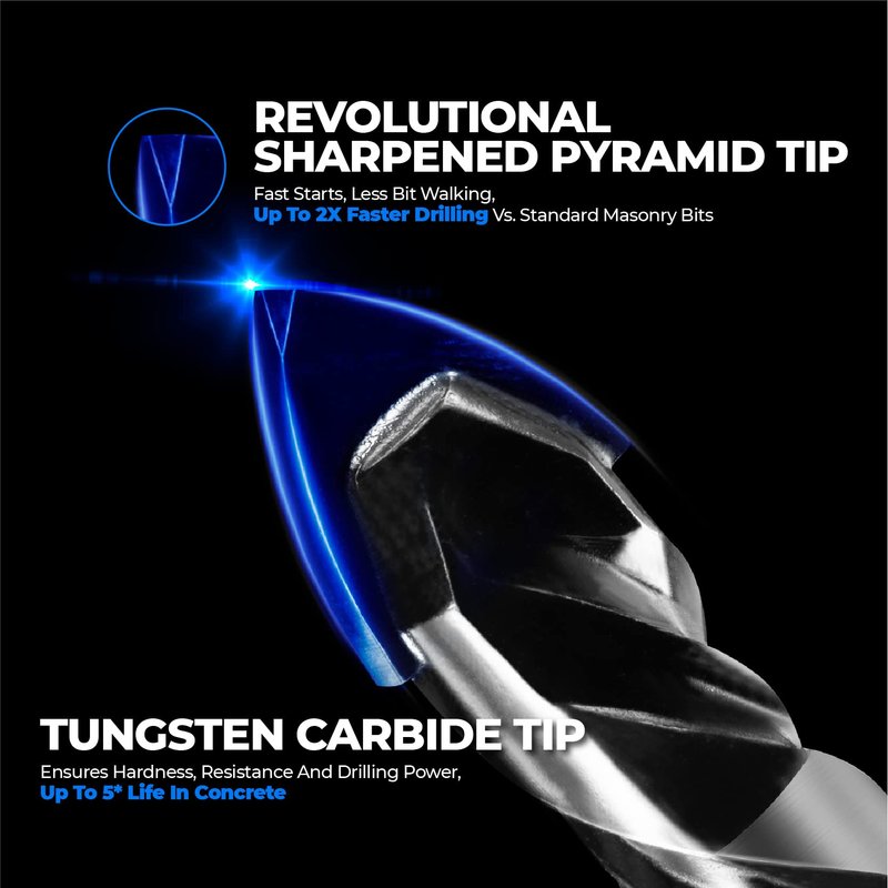 amoolo 3/16" Concrete Drill Bit & Masonry Drill Bit Set(5PCS), Carbide Tip Drill Bit Set for Tile, Brick, Cement, Concrete, Glass, Plastic, Cinder Block, Wood etc