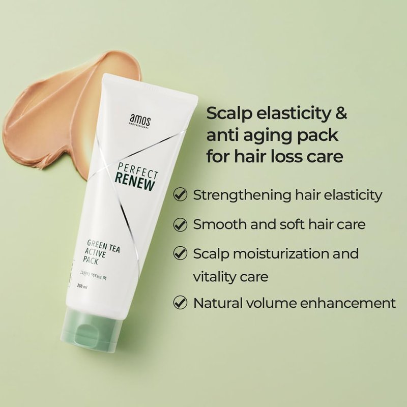 AMOS PROFESSIONAL Perfect Renew Green Tea Active Pack | Nourishing and Moisturizing Hair Mask for Hair Growth | Deep Conditioner | Korean Hair Growth Mask | K-beauty
