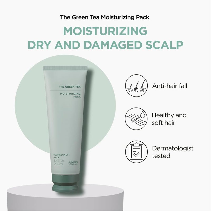 AMOS PROFESSIONAL The Green Tea Moisturizing Pack, Hair & Scalp Treatment for Thinning Hair, Korean Hair Mask, Strengthening Hair, All Hair Types, 8.4 fl.oz