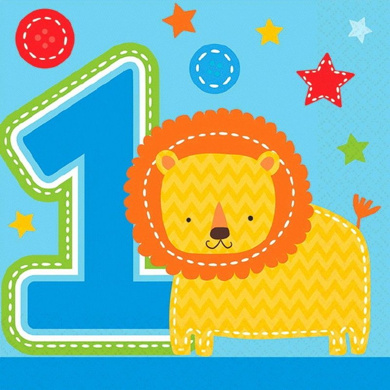 Amscan 1 Wild Boy 1st Birthday Beverage Napkins, 10 Inch, Blue, 16 Count