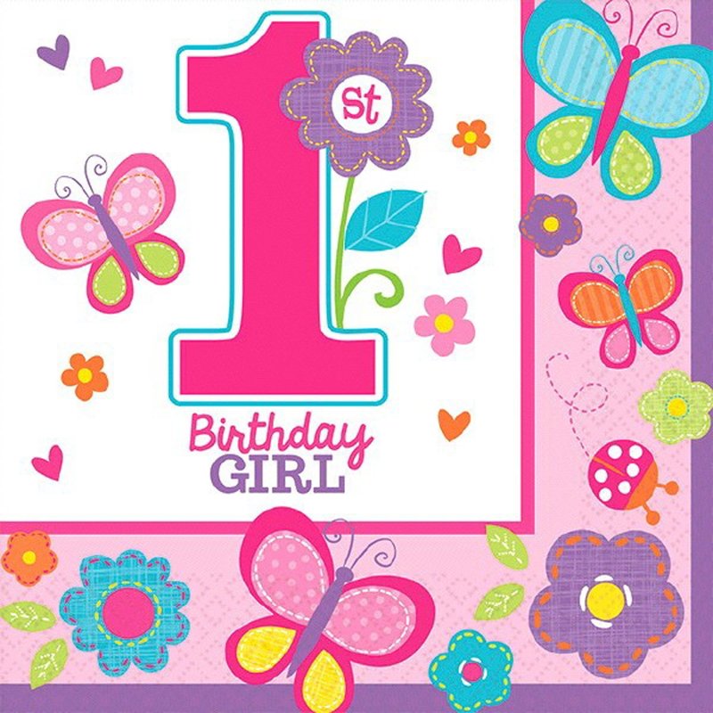 Amscan 1st Sweet Birthday Girl Beverage Napkins 32 Ct