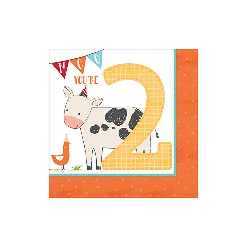 Amscan Barnyard Luncheon Napkins-2nd Birthday, One size, Multicolor