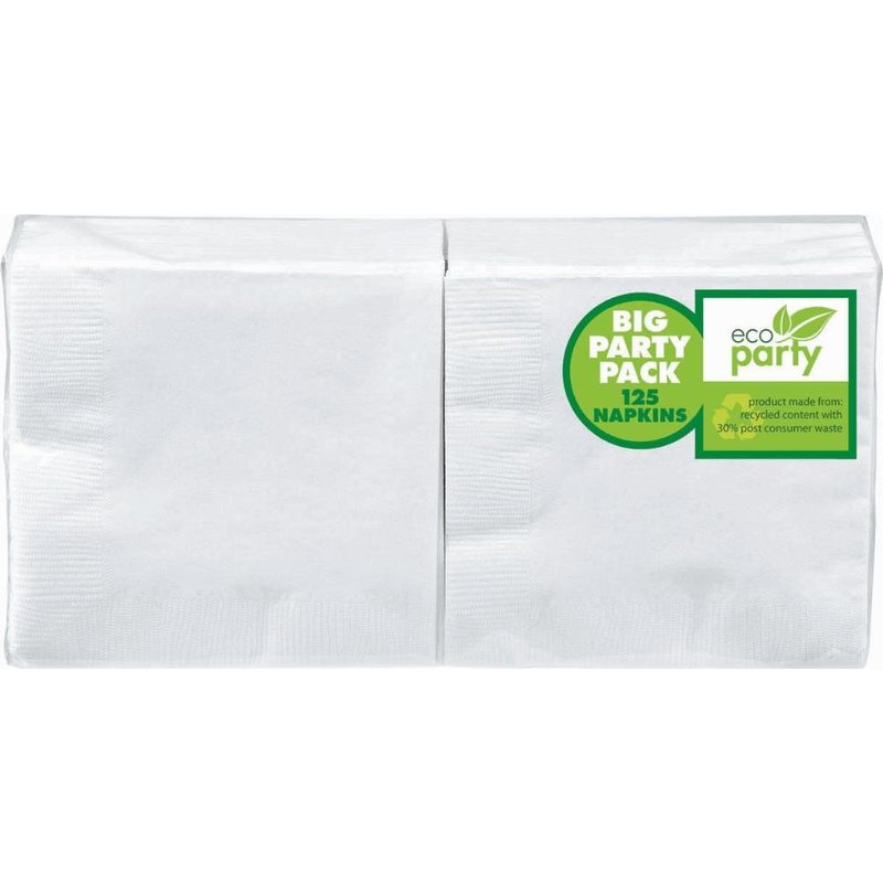 Amscan Big Party Pack 125 Count Beverage Napkins, White (ECO)
