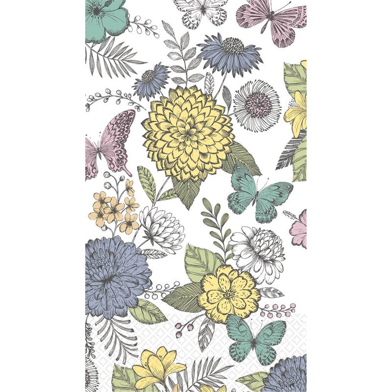 Amscan Butterfly Sketch Disposable 2 Ply Paper Guest Towels Tableware (16 Piece), 8" x 4.5", Pastel