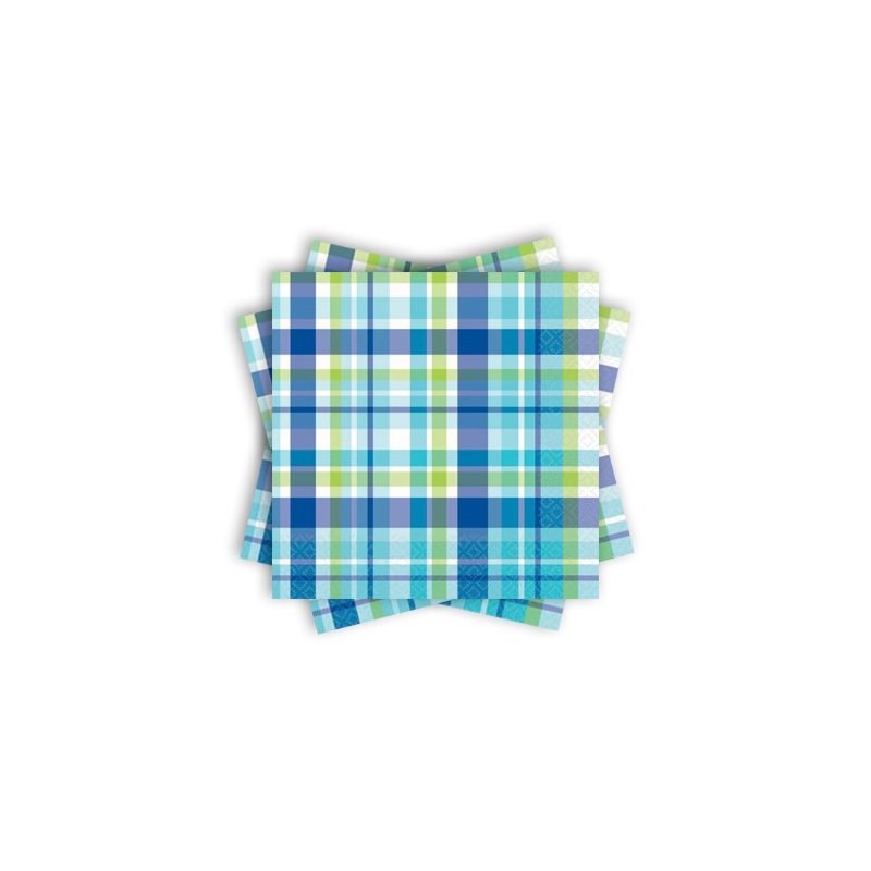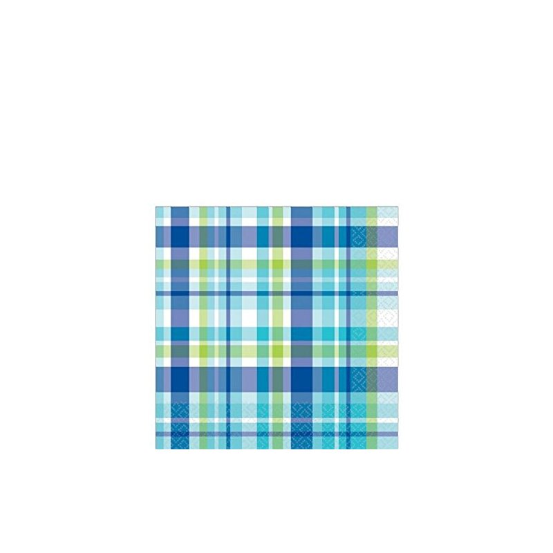 Amscan Decorative Caribbean Plaid Party Beverage Paper Napkins (16 Pack), 5 x 5, Blue