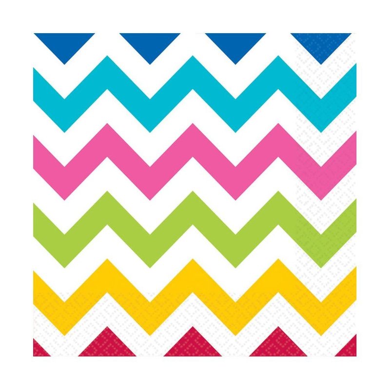 The Chevron Multicolor Luncheon Napkins will add a splash of color to your black and white table or will blend right in with your bright tableware. These 6.5 napkins are white with a colorful zigzag design and come in packs of 36.