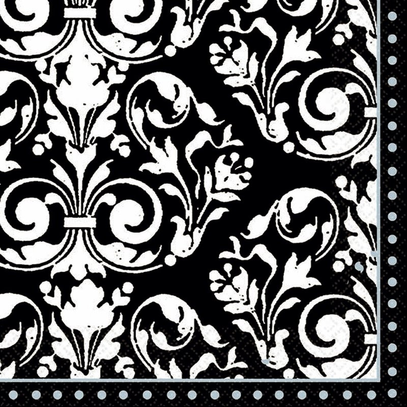 Amscan Highly Absorbent Formal Affair Beverage Napkins (16 Pack), 5 x 5", White/Black