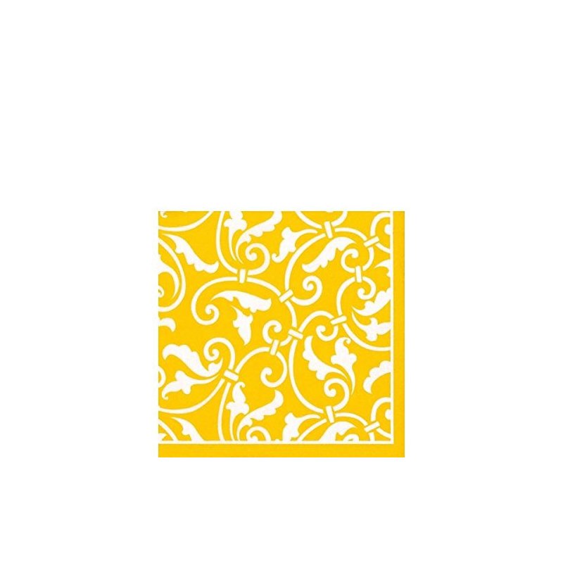 Amscan Highly Absorbent Sunshine Ornamental Scroll Beverage Napkins (16 Pack), 5 x 5", Yellow/White