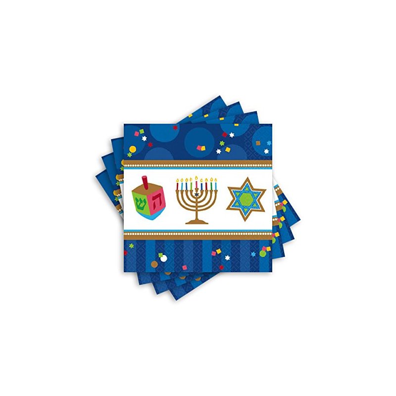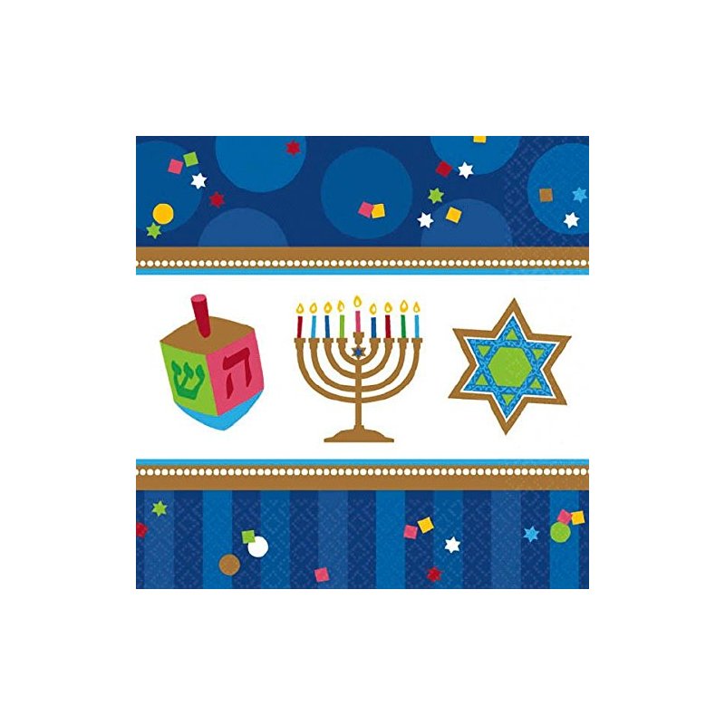 Celebrate Hanukkah in style with our Hanukkah Celebrations party supplies Our Hanukkah Celebrations Tableware features traditional symbols including a lit Menorah Stars of David and dreidels Our luncheon napkins are sold 36 napkins in a pack