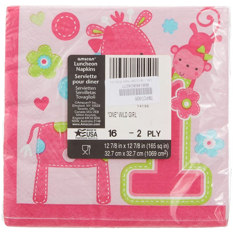 Amscan One Wild Girl 1st Birthday Luncheon Napkins, 6.5", Pink