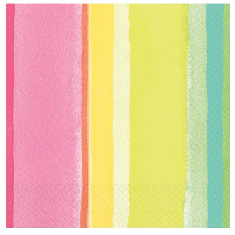 Amscan Party Tableware Sunny and Pink Spring Stripe Beverage Napkins, 16 Ct. | 5" x 5", Multicolor