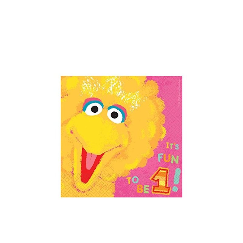 Amscan Sesame Street 1st Birthday Big Bird Luncheon Napkins Party Supplies, Small, Pink