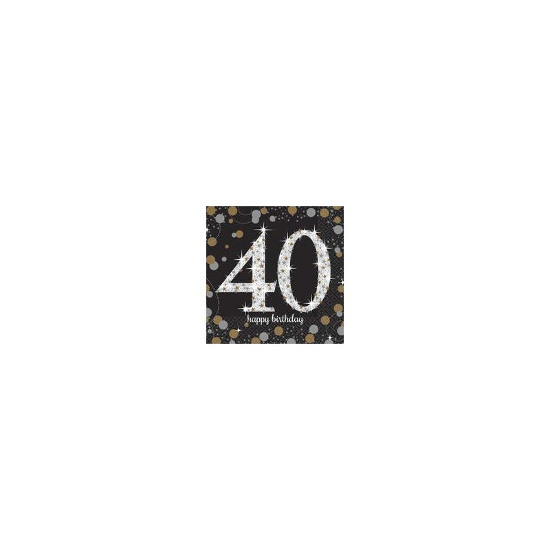 Celebrate 40 in style with these Sparkling Celebration 40 Beverage Napkins! Napkins come in black with silver and gold dots with a sparking number 40. Package includes 50 napkins, each measuring 5 inches x 5 inches.