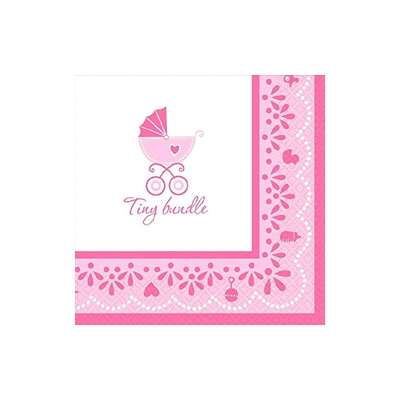 Amscan Sweet Celebrate Baby Girl Beverage Napkins, 5 x 5, Pink/White