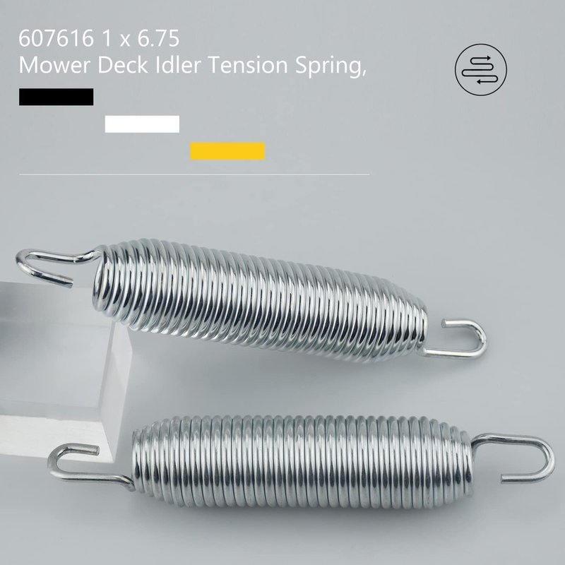 - Replaces former brass in color springs (122388 and 604291), 1 x 6.75 deck idler tension spring, You will receive two springs.